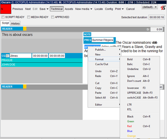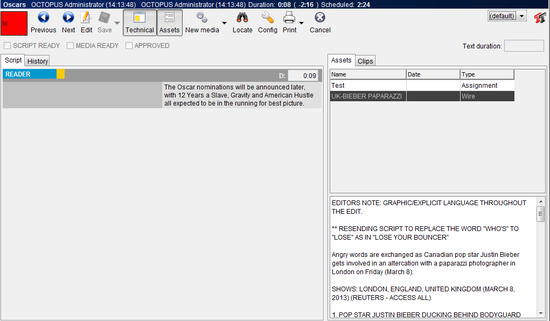 OCTOPUS at your organisation may be configured differently than shown in this manual. Menu options will vary according to modules used by your organisation, story folders will have different names and rundowns may be organised in a different way. Ask your OCTOPUS system administrator if you think something is missing or configuration changes are required.