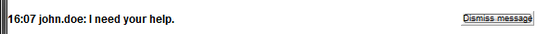 When the first message is typed and sent a chat invitation is sent to the users that are part of the chat. The chat invitation arrives in the notification area/widget in the same way as an instant message. The recipient can double click on the chat invitation to accept and this will open the chat window. Right clicking will display all available options including Chat and Dismiss Message.