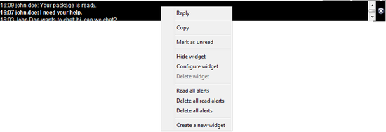 Instant messages are received in the system widget/notification area, this is the black (by default) area at the top of the screen (for more details on Notifications see page 29 in the Wires, RSS, Mail chapter). When the message first arrives it will flash in the notification area.