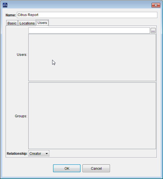 There are three tabs in report edit dialogue - Basic, Locations and User.