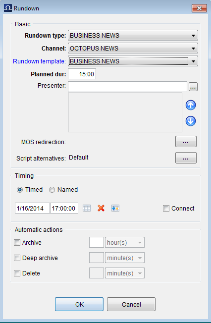 OCTOPUS will often be configured by your administrators to archive rundowns automatically, in addition to this if you want to store a permanent copy of a story from a container that has never been in a rundown you should manually archive the story. Stories can be archived from any of the containers or rundowns. Also whole rundown(s) can be archived manually.