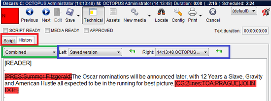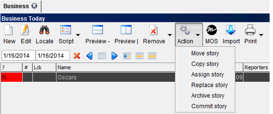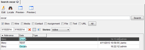 To find a story in the archive use your SEARCH function described above. Using advanced search options open Columns tab, click archived column, choose that you want to look for archived stories only. Same way you can enter reporter’s name if you know it. Then write your search query. Don’t forget to select correct date range. Try to select date range as narrow as possible as this would speed up your search a lot. To see a script of founded archived story, hit SCRIPT button. You can also copy story from archive to one of the containers by pressing COPY button in toolbar and selecting one of containers.