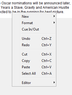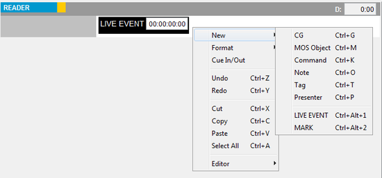 | Insert Alt+Shift+N | Creates a new story slug in the rundown. |