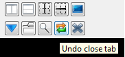 To reopen previously closed tabs, users can click on the Undo close tab button (Icon with Orange and Green arrows) on the Desktop Actions toolbar. Clicking on the blue triangle icon on the same toolbar will display a list of open tabs in all splits; you can select any tab from here and it will become the active tab.